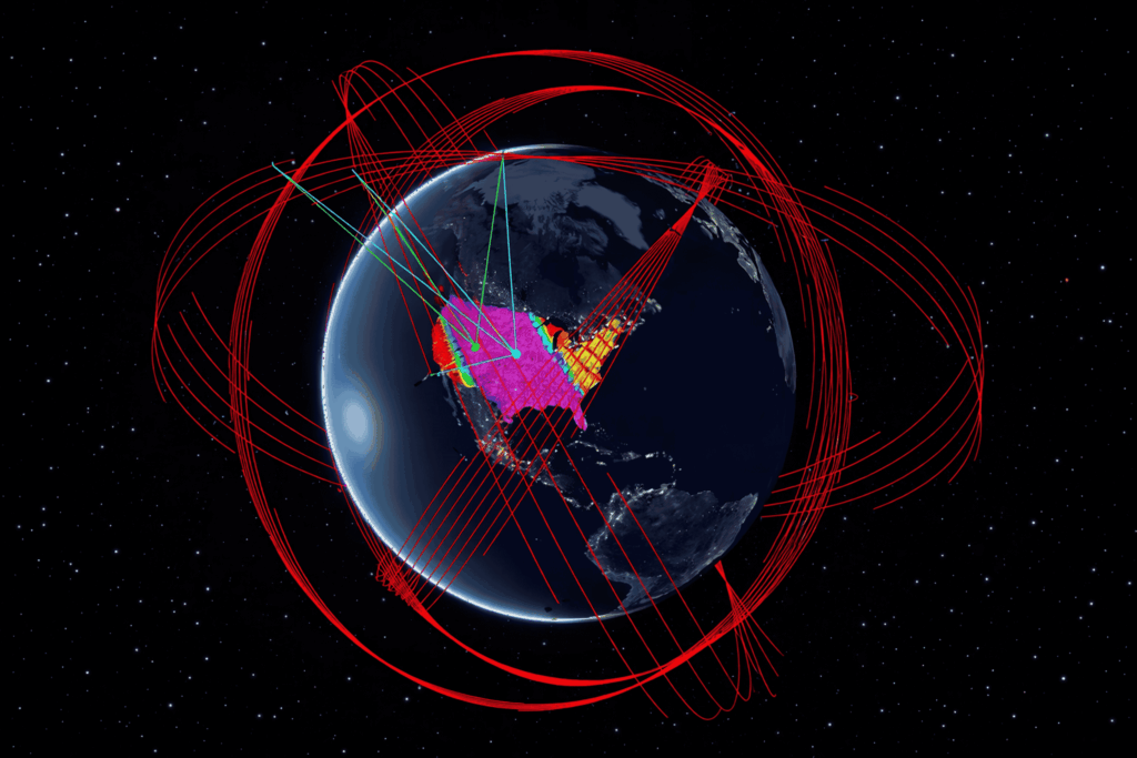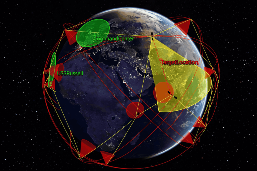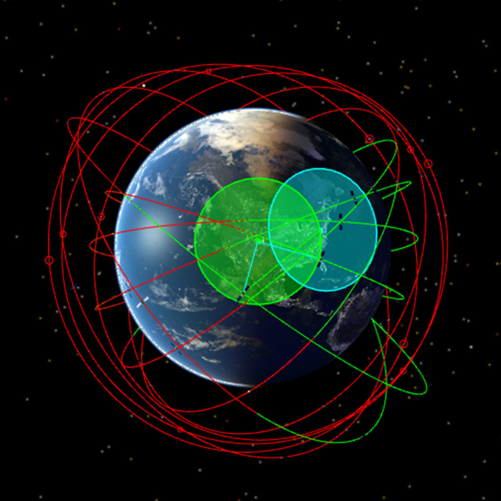 Using FreeFlyer, operators can model the full orbital behavior of an LEO constellation alongside a ground-based shooter asset. This generates time-tagged communication and collection opportunities based on real mission geometry.